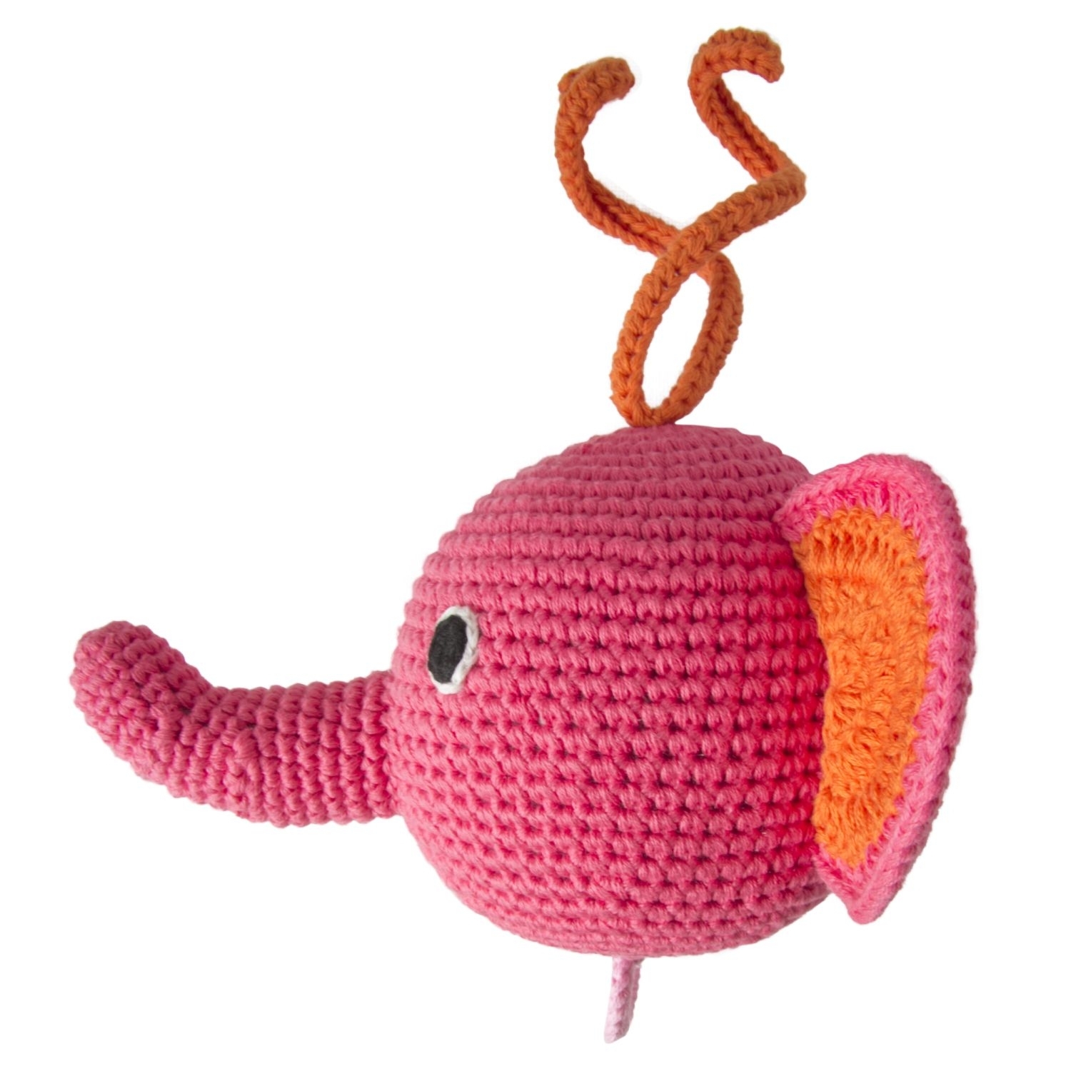 Die pink orangene, gehäkelte Elefanten Spieluhr ist ein toller hingucker für jedes Baby.... mehr