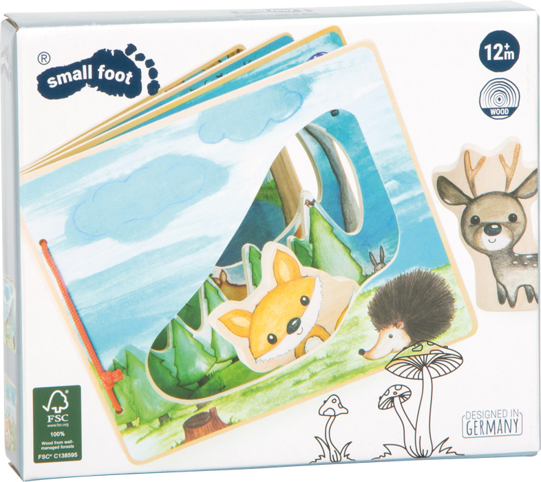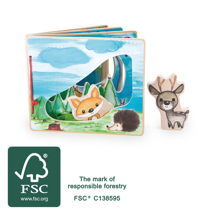 Hier ruft es aus dem Wald! Mit diesem interaktiven Bilderbuch aus FSC® 100%-zertifiziertem Holz lässt es sich herrlich in die Welt des Waldes abtauchen. Der abenteuerlustige Fuchs und das neugierige Reh nehmen kleine Entdecker mit auf ihre Wanderung durch die tiefen Wälder des Buches.