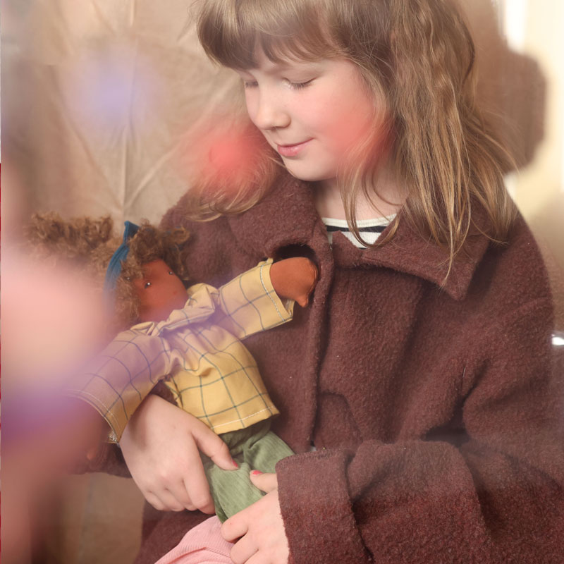 Die in Deutschland handgefertigte Puppe heißt lola. Natürlich kannst Du ihr auch einen anderen Namen geben. Lola von Nanchen ist eine weiche Anziehpuppe mit handgemaltem Gesicht und Haaren. Sie lädt Dein Kind in eine Welt voller Kreativität und Fantasie ein. Diese liebevoll gefertigte Puppe bietet endlose Möglichkeiten immer wieder neue Geschichten zu erfinden und gemeinsam die Welt zu entdecken. Ganz einfach kann Dein Kind Rollenspiele mit Lola spielen und so ganz spielerisch lernen.